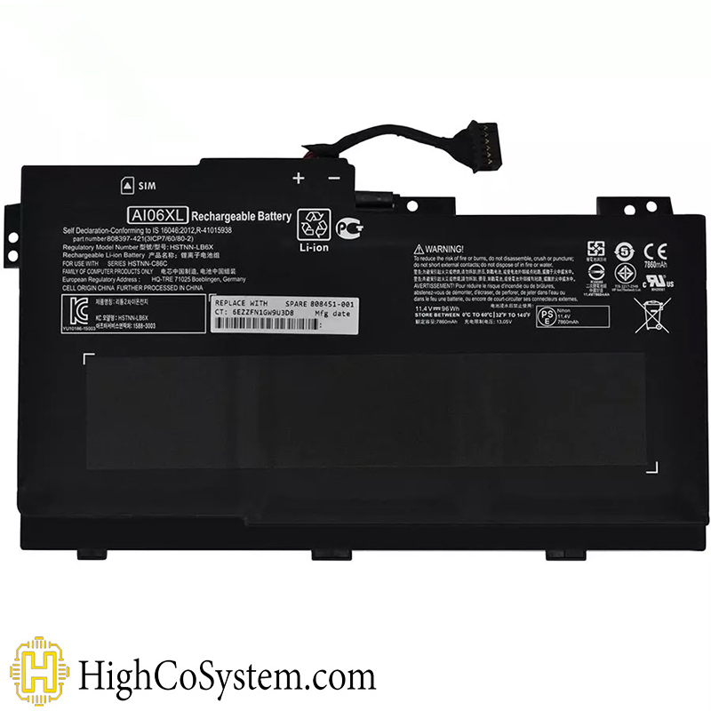 808397-421, 808451-001, 808451-002, A106XL, AI06XL, AI06096XL, AI06096XL-PR, HSTNN-C86C, HSTNN-LB6X